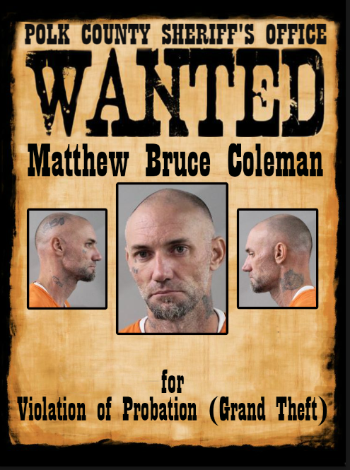 If you have any information regarding the whereabouts of Matthew Bruce Coleman, please contact Detective Hearth at 863-298-6200 or SHearth@polksheriff.org