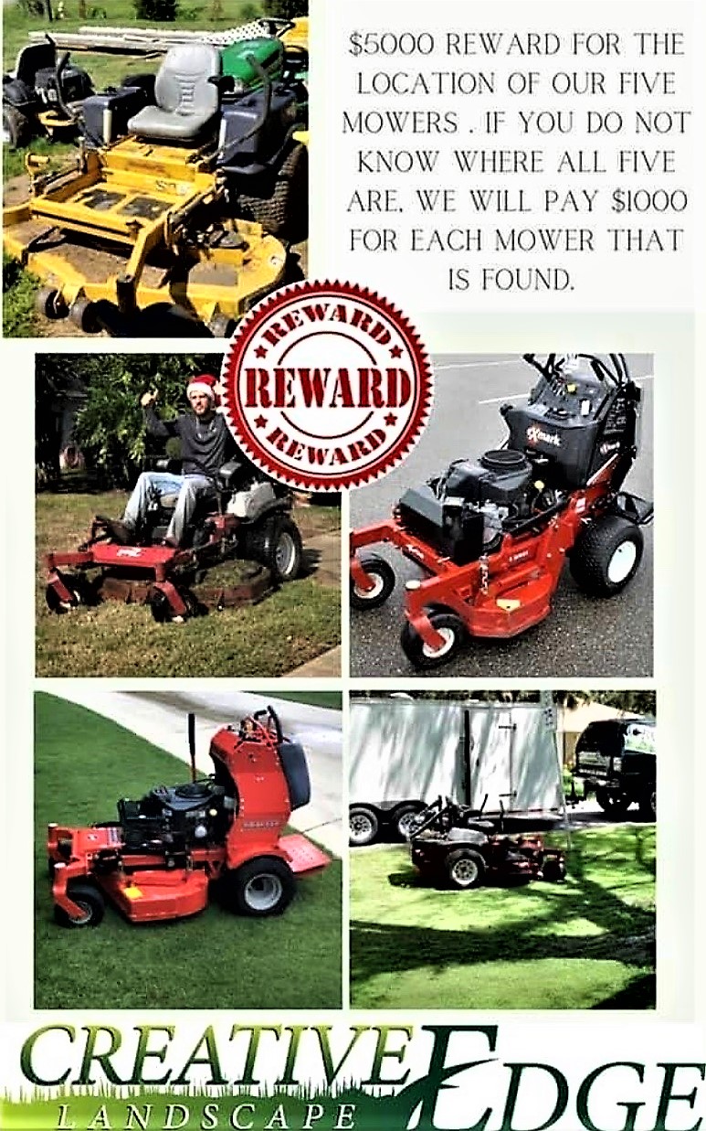 As you can see from the photo, Creative Edge Landscape is also offering a reward for the lawn mowers.