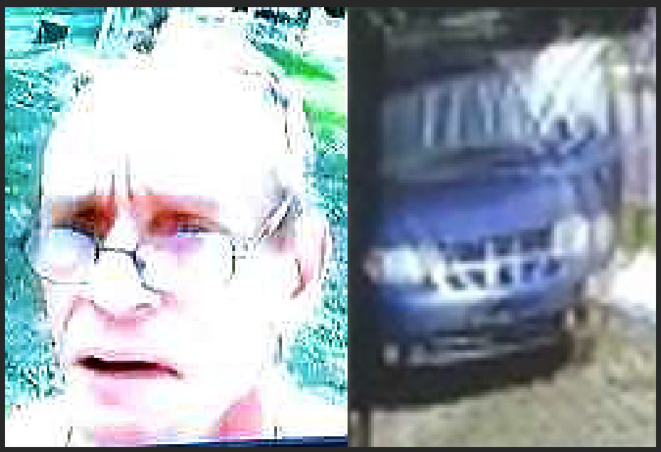 The vehicle in the photo is what he arrived and left in. It is believed to be a blue Dodge Caravan.